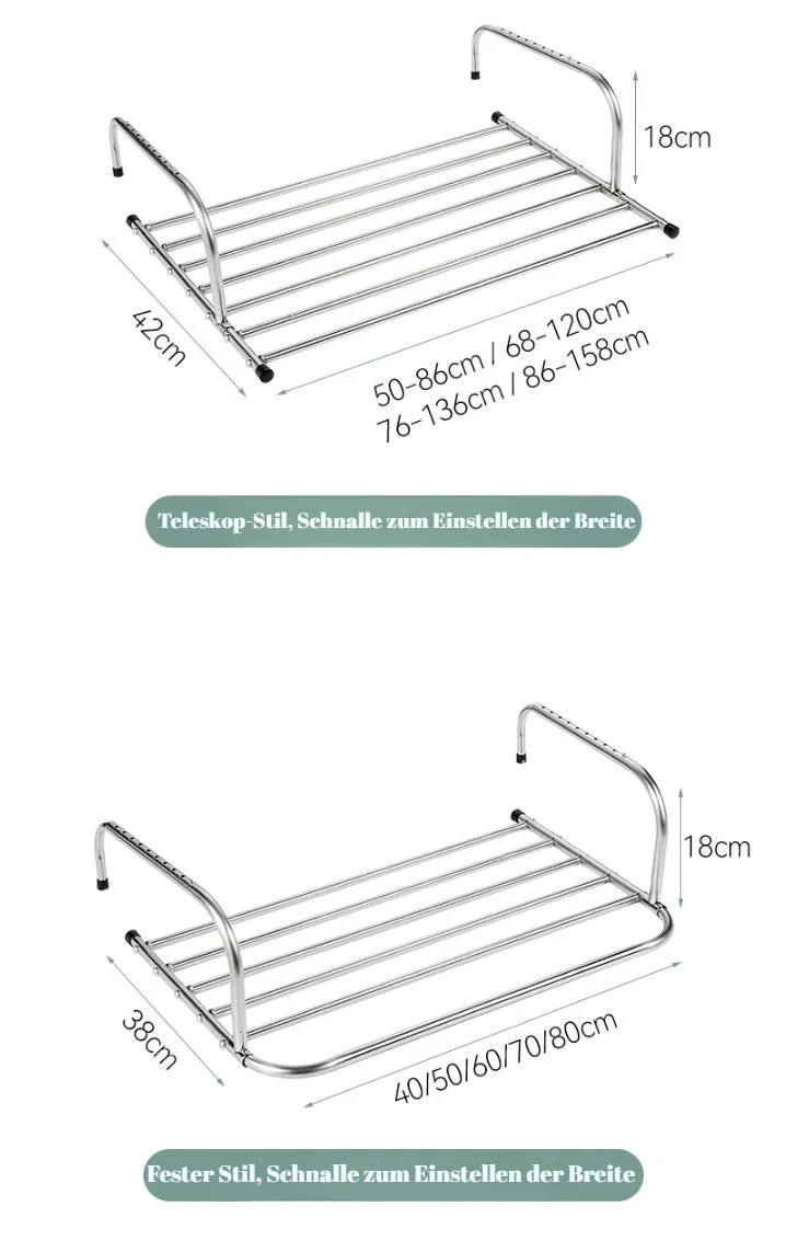 Punch-freies Edelstahl-Wäschetrockner-Gestell Innenbalkon bewegliche Fensterbank Teleskop-Klapp-Wäsc